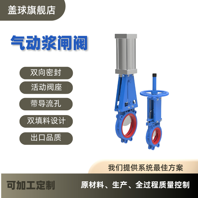 防爆氣動漿閘閥 耐磨無間隙雙向密封 活動橡膠閥座